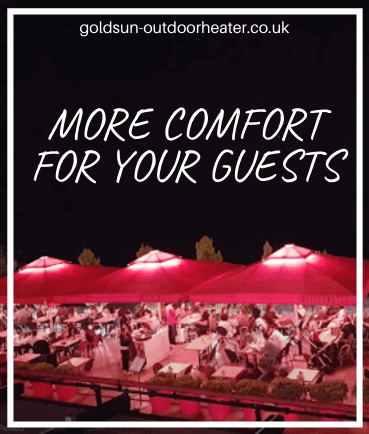 Don't let the rain or snow stop you, Goldsun AQUA's IP55 waterproof certification means you can create a comfortable ambience without any risk. Being too cold or too hot is history! The harshest temperatures, highest winds and even elevated installation points are not a problem anymore.