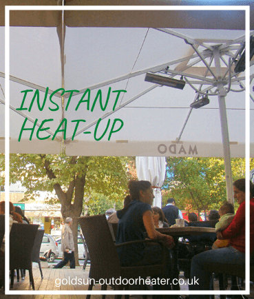 Natural, like the sun but without damaging UV, providing safe, reliable, silent, instant heat for outdoors and large areas. Extremely economical, maintenance free, 2-year guarantee and environmentally friendly - zero carbon emissions. No oxygen consumed so no need for additional ventilation.