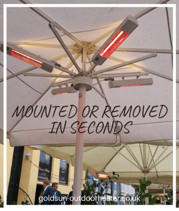 The Aqua series have custom designed acute angle reflectors to carefully restrict the heat spread which allows you to install them under parasols and pergolas safely.